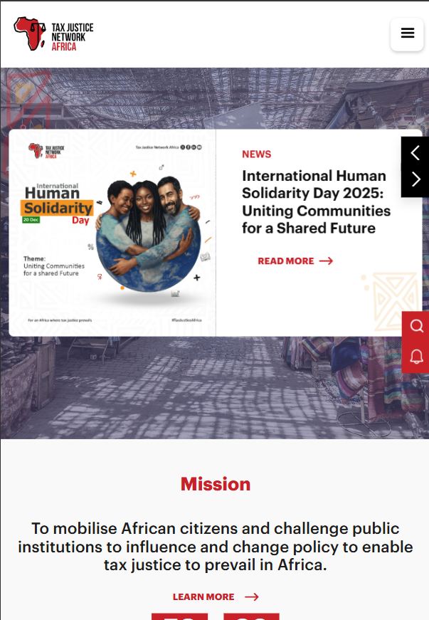 The Tax Justice Network Africa (TJNA) website contains array of resources, information on its advocacy work on global reforms, improved tax transparency and the taxation of digital services. It focuses on transparent and equitable tax policies, including analysis of tax incentives, expenditures, and investment treaties to ensure they benefit African development goals. The website has research publications that provides in-depth studies with articles and analysis on current tax matters in Africa. Not forgetting information on tools like the Anti-illicit financial flows policy tracker and data related to beneficial ownership. All these content initiatives to promote fair tax systems and combat illicit financial flows across the continent.