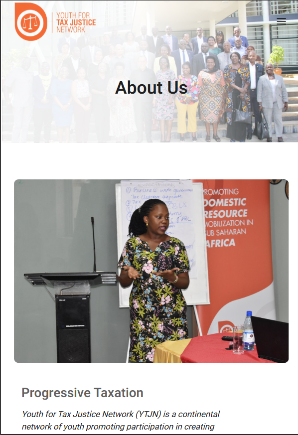 In addition to organizational information, the website publishes blog articles, statements, and updates about current events and campaigns related to tax policy, climate finance, public debt, and global economic governance. For example, YTJN has posted about creative arts competitions, tax talks at United Nations sessions, and calls for government accountability following youth protests in Kenya. These posts help turning complex fiscal issues into accessible stories and opportunities for engagement.